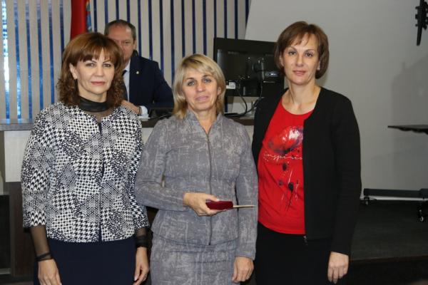 Татьяна Ильюченко и Ирина Теплова вручили бийским депутатам знаки «80 лет представительной власти Алтайского края»