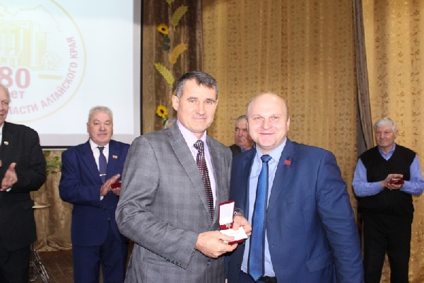 Депутат Алтайского краевого Законодательного Собрания, член фракции «Единая Россия» Николай Якушев вручил народные избранникам Усть-Калманского районного Совета депутатов памятные знаки «80 лет представительной власти Алтайского края».