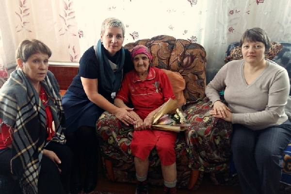 Вместе с заместителем главы администрации Табунского района Светланой Ятловой и главой Алтайского сельсовета Татьяной Себелевой депутат посетила бывшего узника концлагеря Николая Назарчука и четырех тружениц тыла: Елизавету Маркус, Любовь Братко, Амалию Семенову и Валентину Челало. Представители власти не только вручали медали, но и проверяли жилищно-бытовые условия и доносили информацию о социальной поддержке.