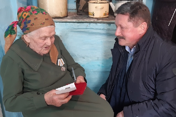 Затем Андрей Осипов посетил с. Степное, где вручил юбилейные медали к 75-летию Победы двум труженицам тыла - Александре Паутовой и Варваре Шадриной. Александре Паутовой в этом году исполняется 91 год. В годы войны она работала на овчарне наравне со взрослыми, ходила на заготовку леса. Фотография Александры Григорьевны неоднократно размещалась на Доске почета Петропавловского района, где она в то время жила и работала. А Варваре Шадриной в этом году исполнится 102 года. Она тоже трудилась с раннего возраста. К концу войны научилась управляться с трактором, на котором и проработала 15 лет, потом ушла на ферму и трудилась дояркой, пока позволяло здоровье. Варвара Кирилловна имеет множество наград за добросовестный труд.