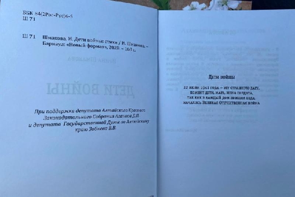 При поддержке депутата Алтайского краевого Законодательного Собрания, члена фракции «Единая Россия» Дмитрия Аганова издан сборник стихотворений, посвящённых детям войны.