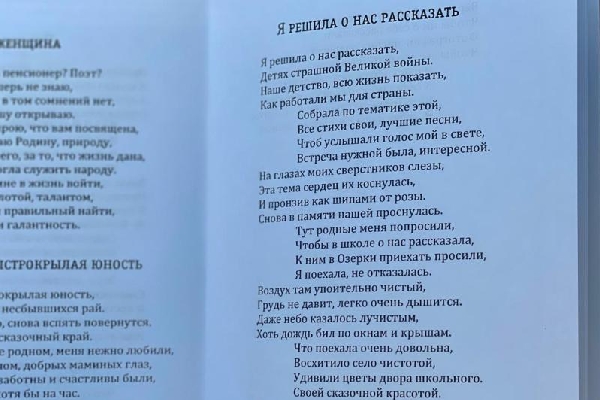 С просьбой о помощи к парламентарию обратились представители союза пенсионеров Индустриального района города Барнаула. Они рассказали об авторе стихов Ирине Александровне Шмаковой и самом сборнике.