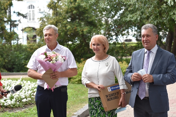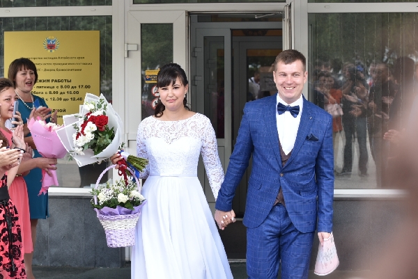 Поздравить молодоженов во Дворец бракосочетаний г. Барнаула приехали председатель Алтайского краевого Законодательного Собрания Александр Романенко, заместитель председателя комитета АКЗС по здравоохранению и науке Ирина Солнцева, депутат фракции «Единая Россия» в АКЗС Денис Голобородько и заместитель министра здравоохранения Алтайского края Владимир Лещенко.