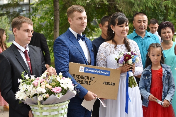 «В этот значимый для молодой семьи день от имени всех жителей Алтайского края, регионального отделения партии «Единая Россия» говорю огромное спасибо Виктору и Айнуре за их выбор и их нелегкий труд. Как ординаторы, они имели право отказаться от работы в инфекционном госпитале, но не сделали этого и продолжают трудиться в «красной зоне». Низкий поклон вам и вашим родителям, воспитавшим таких прекрасных детей», - обратился к супругам и их гостям Александр Романенко. Он пожелал ребятам семейного счастья и успехов в нелегкой, но такой важной работе.