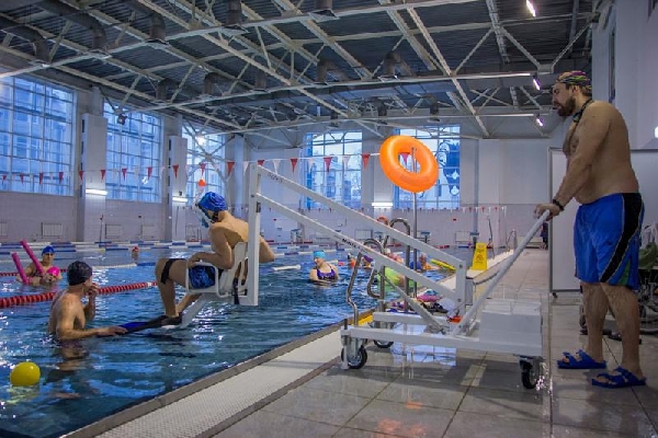 Бассейн, построенный по партийному проекту «500 бассейнов», оборудовали подъемником для людей с инвалидностью
