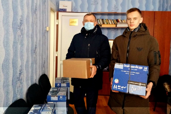 Для эффективной организации учебного процесса в школе депутат привезла коллективу офисную бумагу и дезинфицирующие средства.
