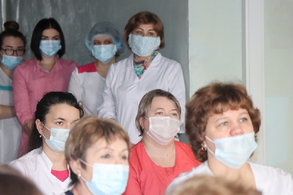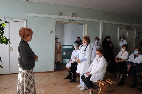 В Поспелихинской центральной районной больнице Ирина Солнцева встретилась с медицинскими работниками, ответила на их вопросы, поблагодарила за самоотверженный труд и поздравила с наступающим Новым годом и Рождеством.