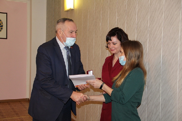 Сергей Серов вручил памятную медаль «За бескорыстный вклад в организацию Общероссийской акции взаимопомощи #МыВместе» и грамоту к ней за подписью Президента РФ Владимира Путина жительнице райцентра Татьяне Кузнецовой. В 2020 году Татьяна Андреевна принимала активное участие в мероприятиях акции, доставляла продукты питания жителям сел района, находящихся в группах риска в связи с пандемией коронавируса.