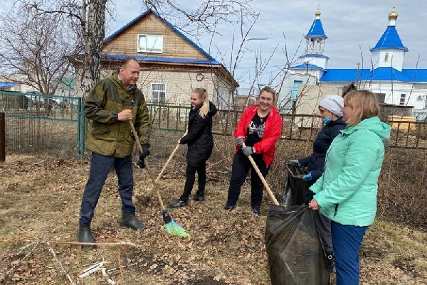 Дмитрий Аганов провел субботник у памятника погибшим воинам в с. Власиха