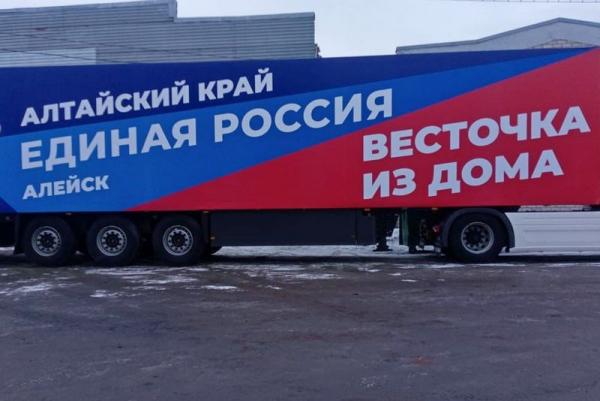 Напомним, акцию «Весточка из дома» организовали жены офицеров и солдат при поддержке войсковой части, администрации Алейска и Алейского района, а также регионального отделения «Единой России». К сбору присоединились депутаты фракции «Единая Россия» в АКЗС Юрий Матвейко, Максим Банных, Александр Демин, Анатолий Вытоптов, «Алейскзернопродукт», другие компании города и района. Акцию поддержали председатель Общественного совета министерства транспорта Алтайского края Алексей Паженцев и директор транспортной компании «Алтай» Юрий Бетеньков.