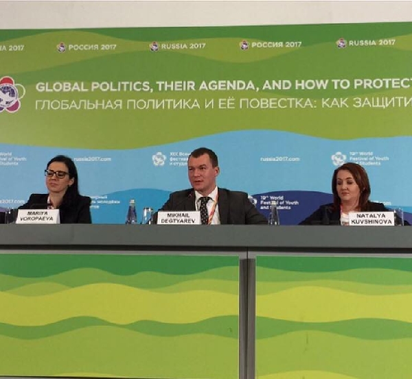 На площадке "Глобальная политика" в ходе Всемирного фестиваля молодежи и студентов было предложено создать Международный молодежный парламент, который объединит активную молодежь всего мира для решения насущных вопросов.