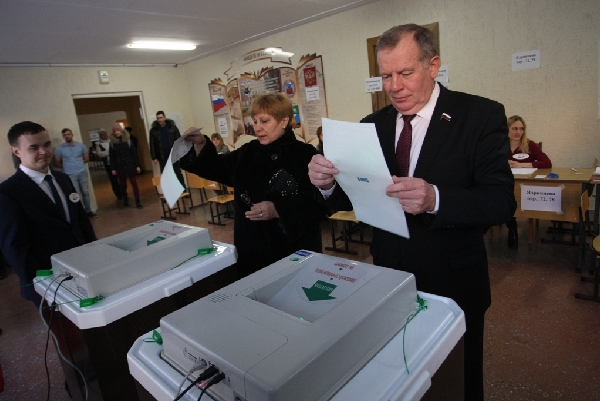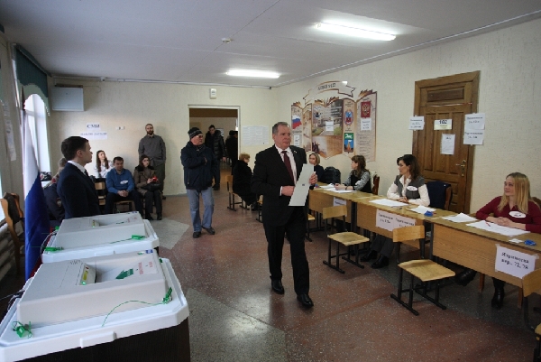 Депутат Государственной Думы Иван Лоор пришел на избирательный участок в минуты открытия.