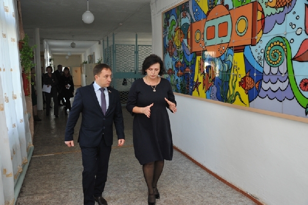 Парламентарий встретился с педагогическим коллективом средней общеобразовательной школы поселка Бурсоль. Это единственное в поселке образовательное учреждение, в нем обучается 80 школьников. Олег Быков познакомился с условиями, в которых учатся ребята - осмотрел кабинеты начальных классов, классы профильных предметов и спортивный зал.