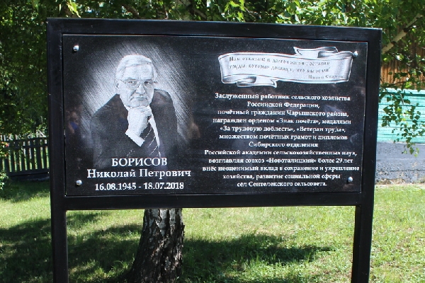 В Чарышском районе 16 августа открыли мемориальную доску почетному гражданину района Николаю Борисову. Идея увековечить память заслуженного работника сельского хозяйства Российской Федерации, кавалера многочисленных краевых и федеральных наград принадлежит инициативной группе жителей района.
