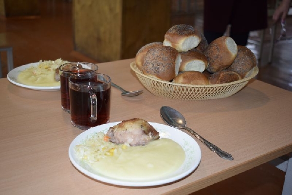 В школе №5 районного центра в начальных классах учится 190 ребят. Все они получают бесплатное питание. Меню разработано на 12 дней, в течение этого периода блюда не повторяются. Ежедневный рацион включает в себя мясо, крупы, овощи и фрукты. В качестве напитка детям предлагают не только чай, но и морсы, кисели, компоты, соки. Повара готовят салаты из сезонных овощей и свежую выпечку.