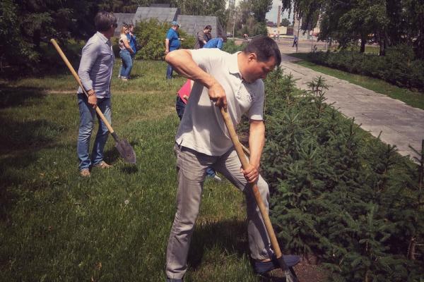Владимир Семенов помог восстановить пострадавшую от вандалов аллею у Мемориала славы в Барнауле
